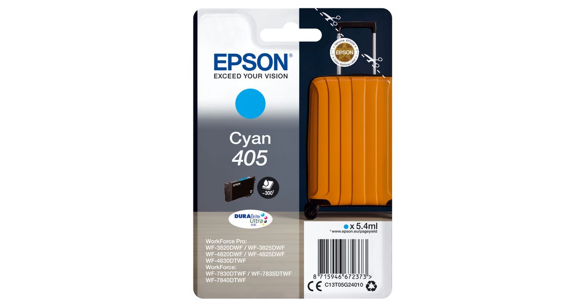 Epson Cyan 405 DURABrite Ultra Ink, Standard Yield, Pigmendipõhine tint, 5,4 ml, 1 tk, Üksik pakend