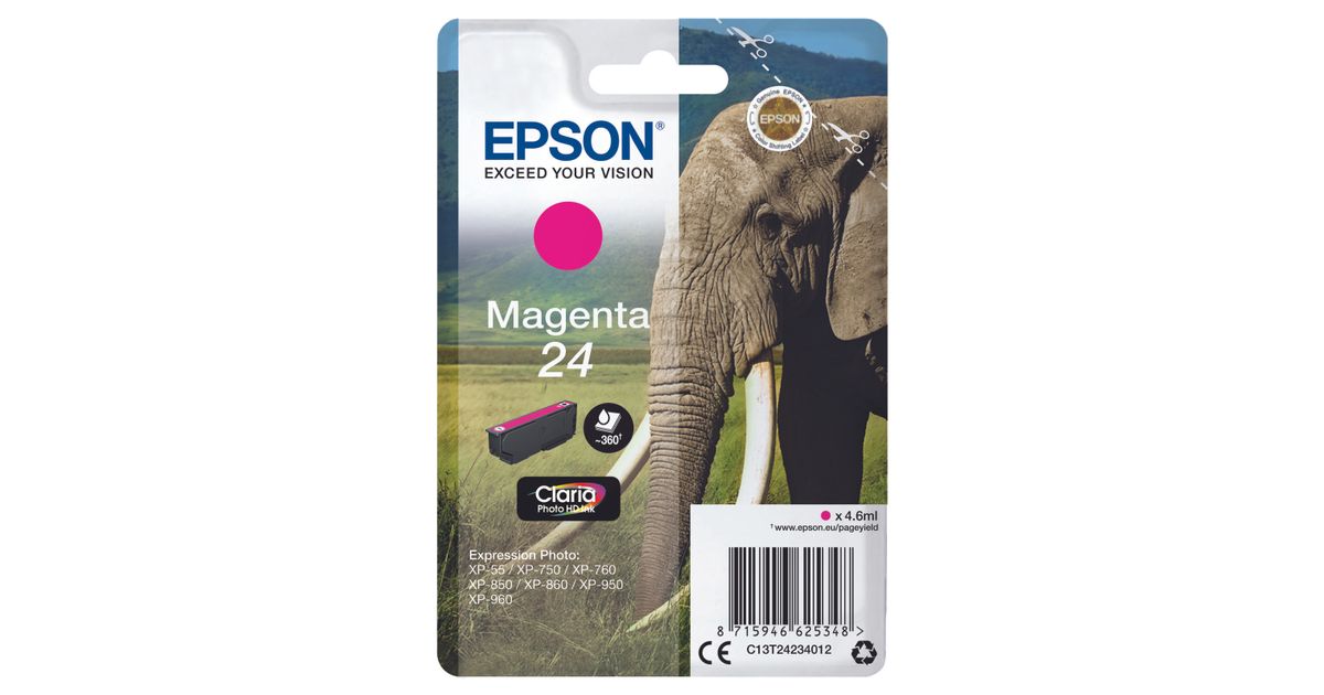 Epson Elephant C13T24234012, Standard Yield, Pigmendipõhine tint, 4,6 ml, 360 lehekülge, 1 tk