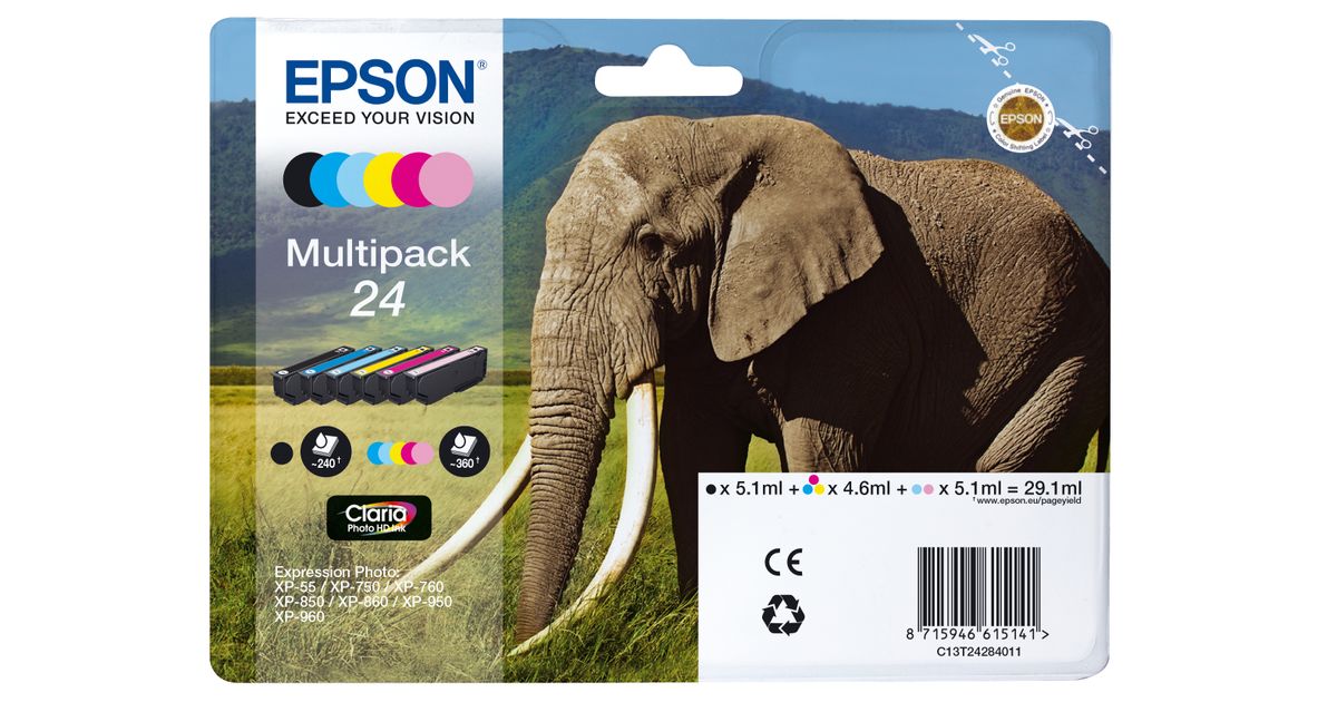 Epson Elephant C13T24284011, Standard Yield, 5,1 ml, 4,6 ml, 6 tk, Mitmikpakend