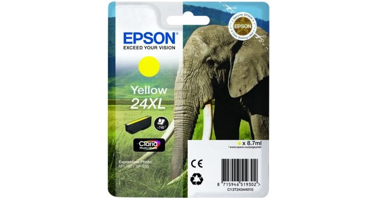 Epson Elephant Singlepack Yellow 24XL Claria Photo HD Ink
