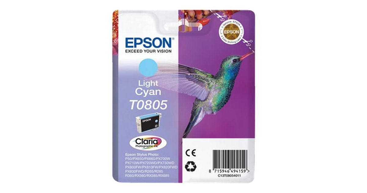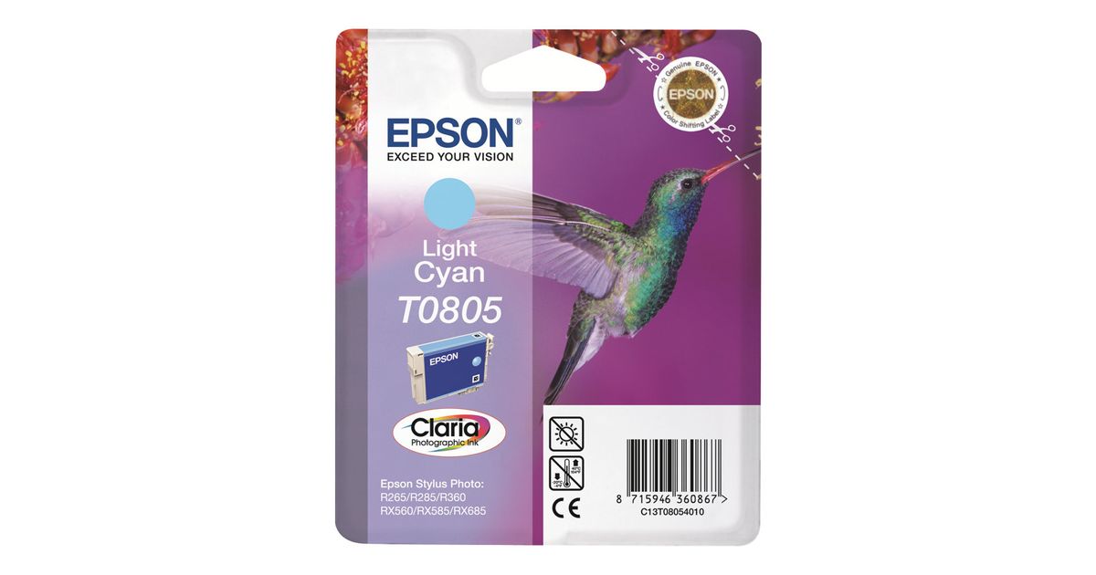 Epson Hummingbird Singlepack Light Cyan T0805 Claria Photographic Ink, Pigmendipõhine tint, 1 tk