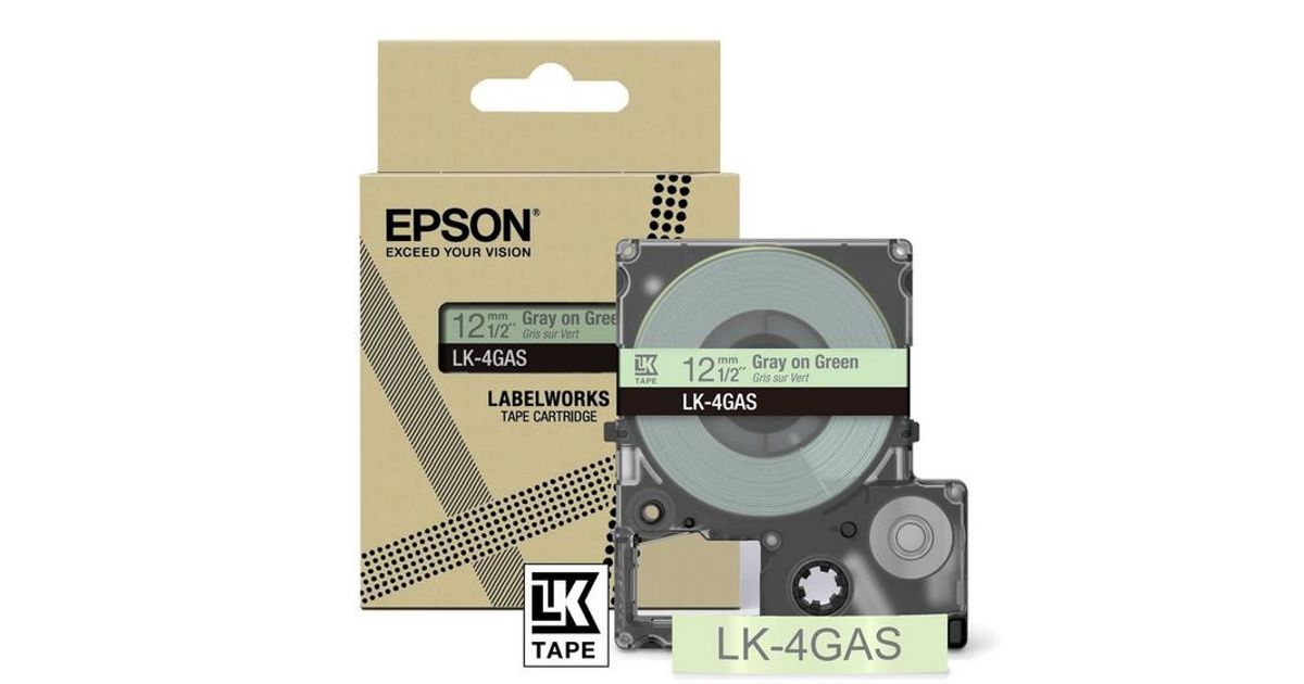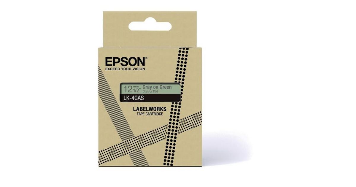 Epson LK-4GAS, Hall, Heleroheline, Termosiirde printimismeetod, LabelWorks LW-C410, 1,2 cm