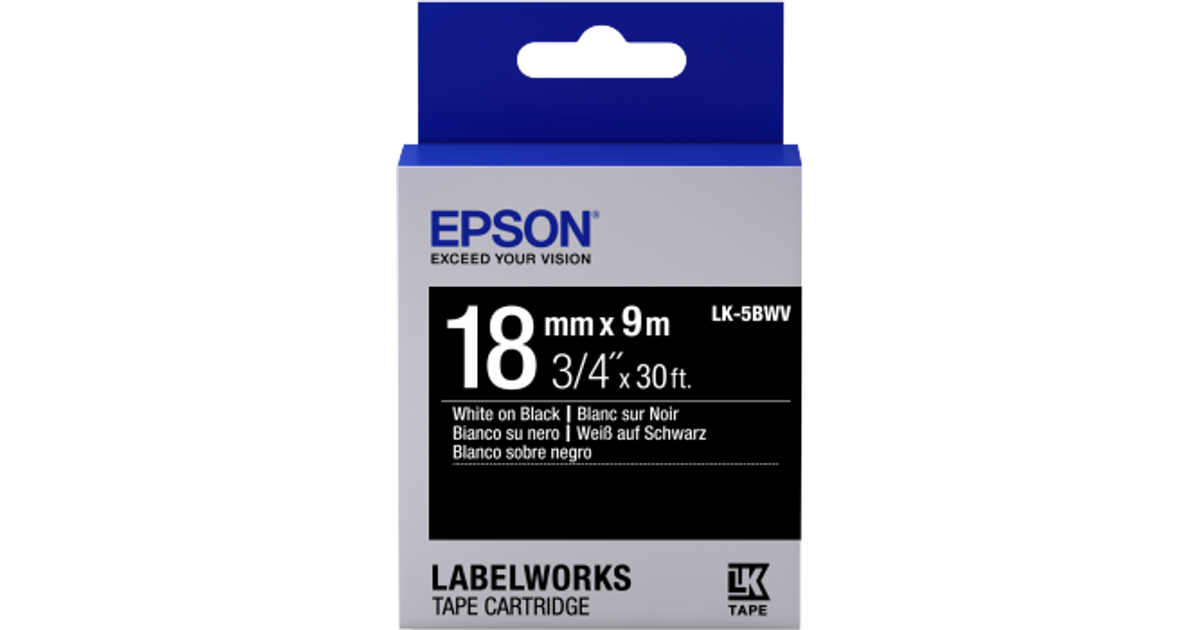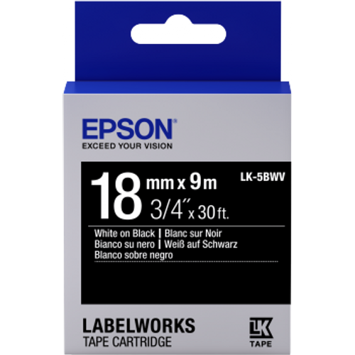 Epson LK-5BWV, Valge mustal taustal, Jaapan, LabelWorks LW-400 LabelWorks LW-400L LabelWorks LW-400VP LabelWorks LW-700 LabelWorks LW-900P, 1,8 cm, 9 m, 1 tk