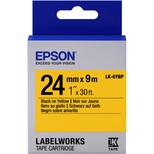Epson LK-6YBP, Must kollasel taustal, Jaapan, LabelWorks LW-1000P LabelWorks LW-600P LabelWorks LW-700 LabelWorks LW-900P, 2,4 cm, 9 m, 1 tk