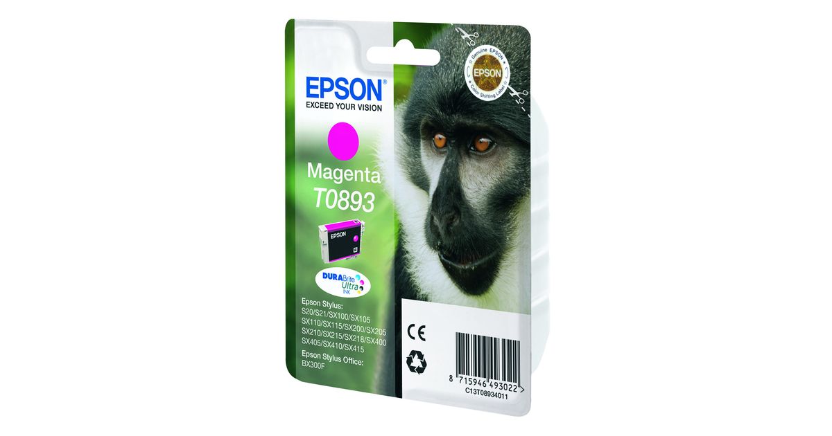 Epson Monkey Singlepack Magenta T0893 DURABrite Ultra Ink