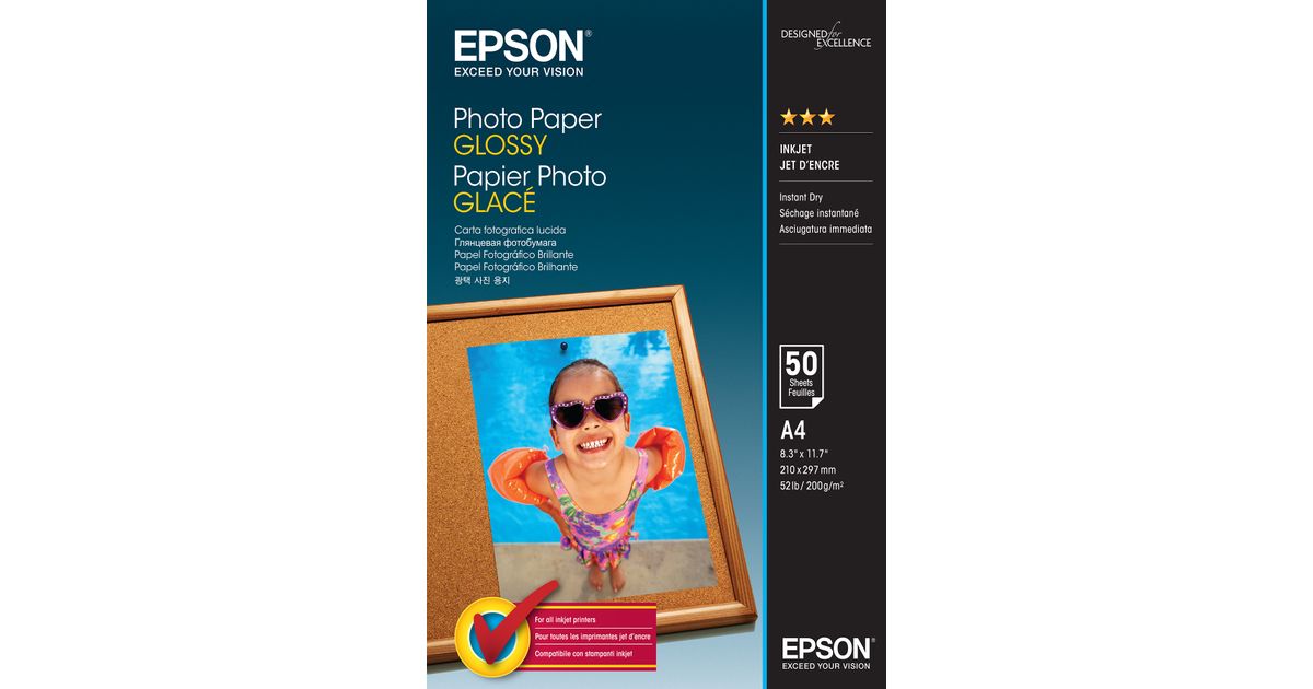 Epson Photo Paper Glossy, Läige, 200 g/m², A4, 50 lehte, - WorkForce WF-7610DWF - WorkForce WF-7110DTW - WorkForce WF-3620DWF - WorkForce WF-2750DWF -..., 1 tk