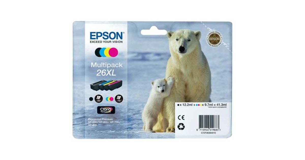 Epson Polar bear Multipack 4-colours 26XL Claria Premium Ink, Pigmendipõhine tint, Värvipõhine tint, 12,2 ml, 9,7 ml, 1 tk, Mitmikpakend