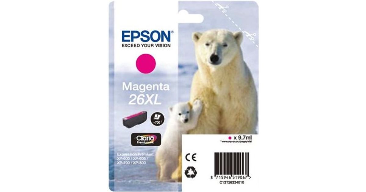 Epson Polar bear Singlepack Magenta 26XL Claria Premium Ink