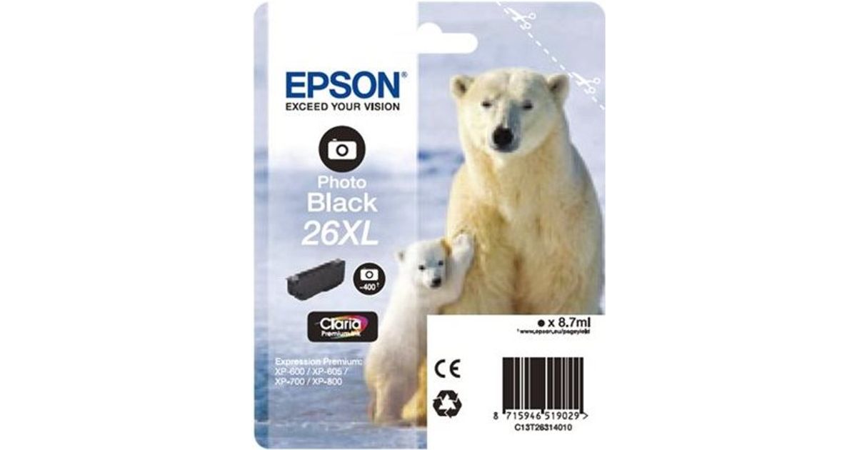 Epson Polar bear Singlepack Photo Black 26XL Claria Premium Ink