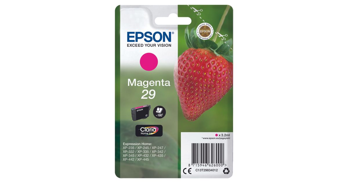 Epson Strawberry C13T29834012, Standard Yield, Pigmendipõhine tint, 3,2 ml, 180 lehekülge, 1 tk