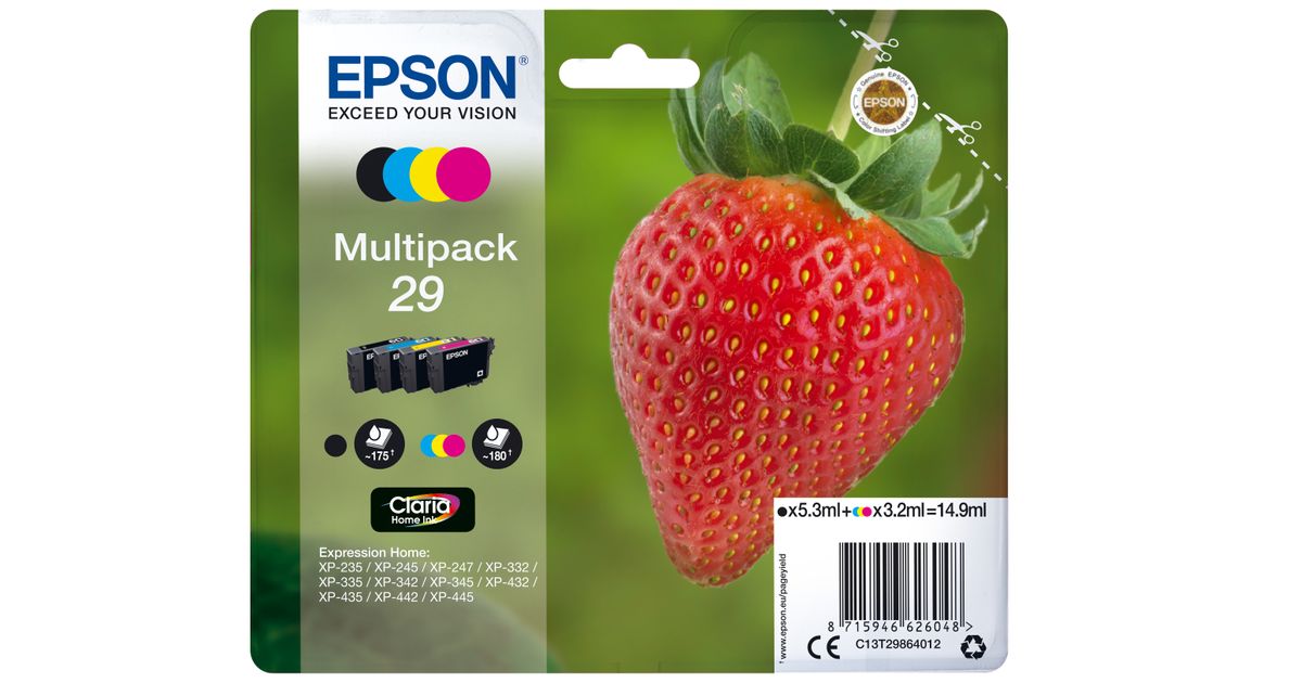 Epson Strawberry C13T29864012, Standard Yield, 5,3 ml, 3,2 ml, 175 lehekülge, 1 tk, Mitmikpakend