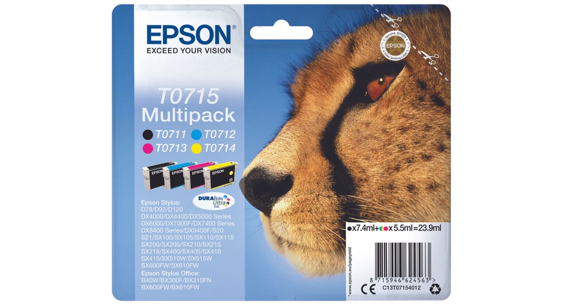 Epson T0715, Standard Yield, 7,4 ml, 5,5 ml, 4 tk, Mitmikpakend