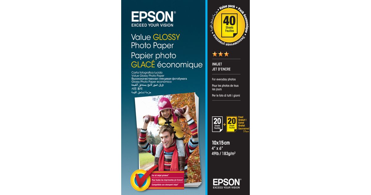 Epson Value Glossy Photo Paper, Läige, 183 g/m², A4, 10x15 cm, 40 lehte, 100 mm