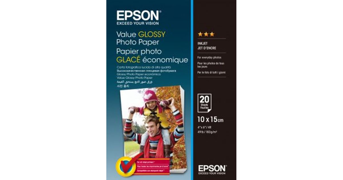 Epson Value Glossy Photo Paper, Läige, 183 g/m², 10x15 cm, 20 lehte, - Expression Premium XP-900 - Expression Premium XP-830 - Expression Premium XP-820 - Expression..., 100 mm
