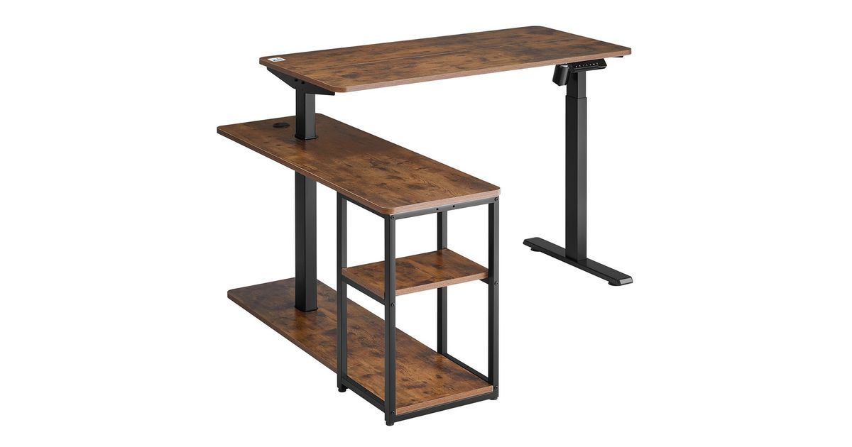 Ergo Office electric lifting desk, max height 121cm, max - 70 kg, with top and shelves, for standing work, brown ru
