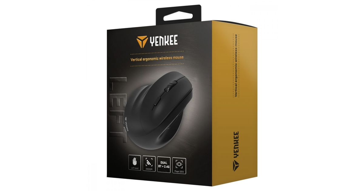 Ergonomic left-handed wireless mouse, Dual WL+BT battery