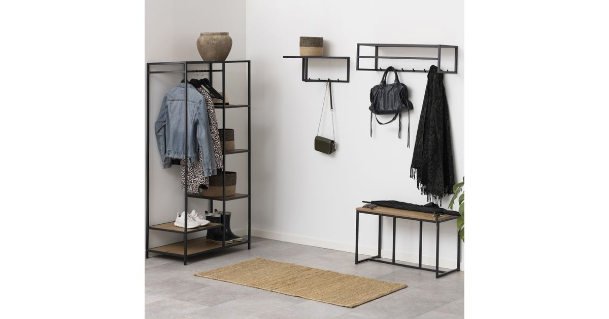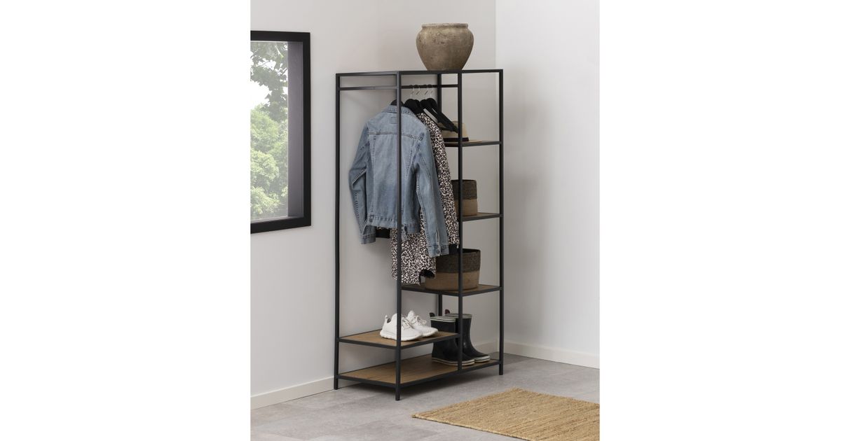 Esikunagi SEAFORD, 77x45xH165cm, 5 riiuliga, metsik tamm/ must metall