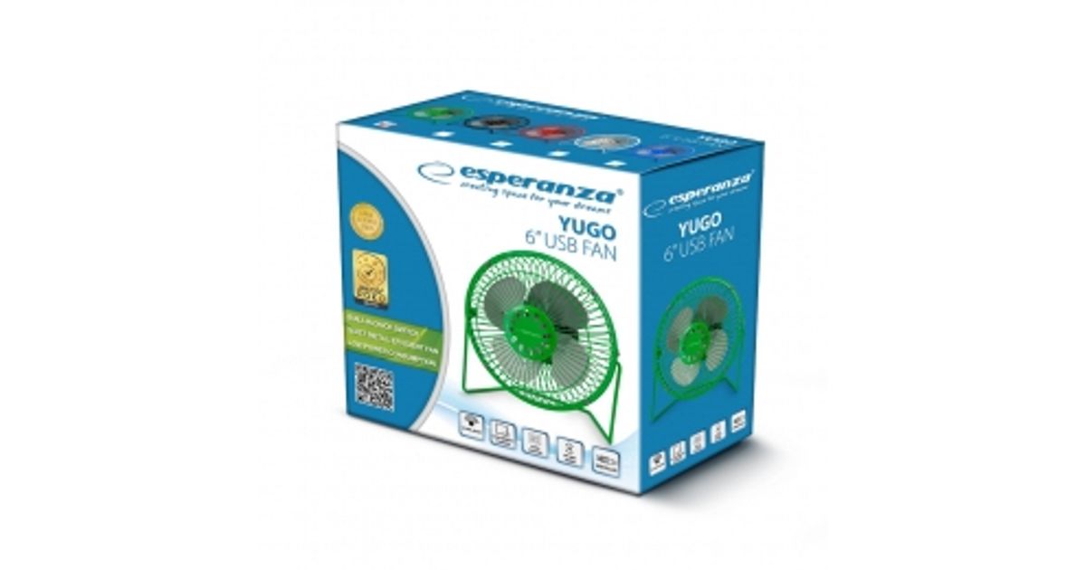 Esperanza EA149G, Labadega majapidamisventilaator, Roheline, Laud, Metall, 0,85 m, USB
