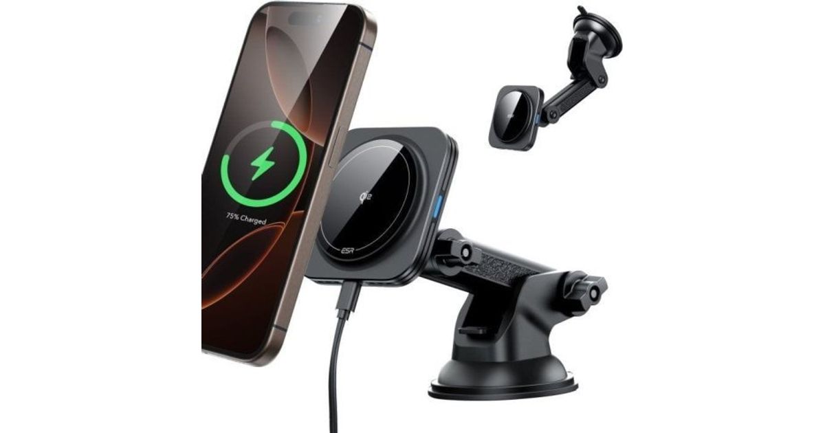 ESR-laadija Autohoidik kokpiti/akna jaoks koos induktiivse laadijaga ESR Halolock Magnetic Magsafe Armatuurlaud autokinnitus juhtmevaba laadija Qi2 15W must