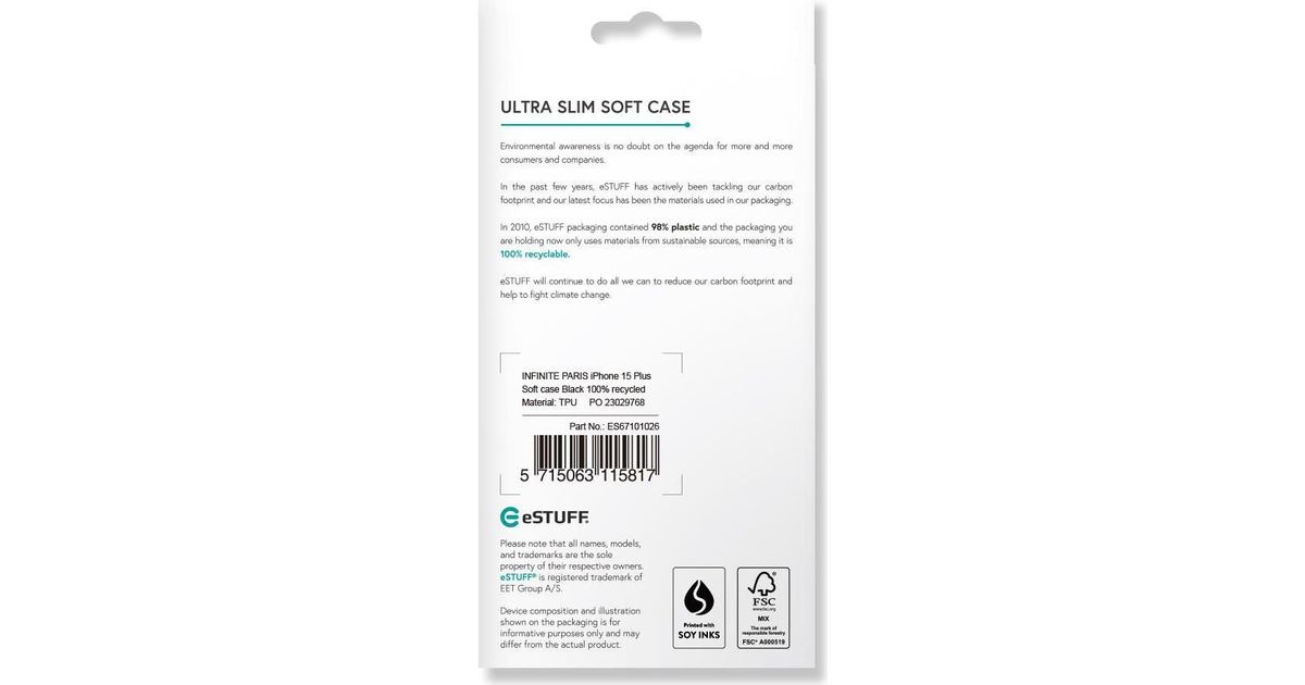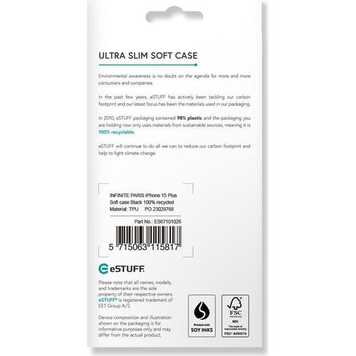 eSTUFF INFINITE PARIS iPhone 15 Plus Soft case Black 100% recycled - Soft case Black 100% recycled (ES67101026)