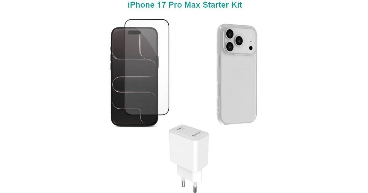 eSTUFF Kit for iPhone 17 Pro Max. Charger, Cover, Glass. Brown
