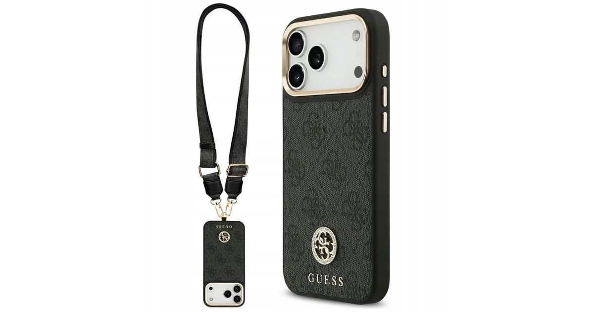 Etui Guess 4G Srtass Logo & Big Strap Metal Buttons MagSafe do iPhone 17 Pro Max czarny