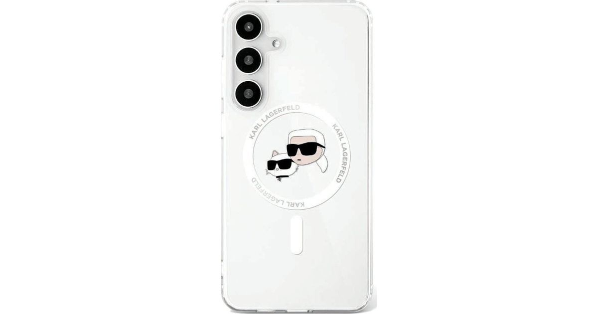 Etui Karl Lagerfeld Button Karl & Choupette Heads Printed Logo MagSafe Samsung Galaxy S25 biały