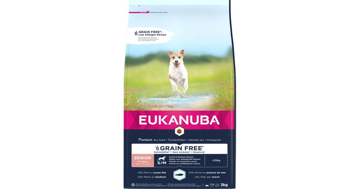 EUKANUBA Senior teraviljavaba ookeanikalaga väikest ja keskmist tõugu eakatele koertele 3 kg