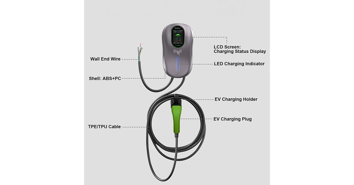 The charging gun can be conveniently mounted on the wall for easy access and space saving, especially in confined spaces. The wall mount stabilizes the cable and gun, protecting them from accidental damage and from dirt. With the wall mount, the user can organize the charging station, which enhances the aesthetics and functionality of the charging area in both home garages and commercial parking lots.