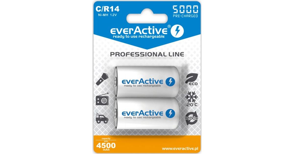 Everactive EVHRL14-5000, Laaditav patarei, Nikkel-metallhüdriid (NiMH), 1,2 V, 2 tk, 5000 mAh, -20 - 50 °C