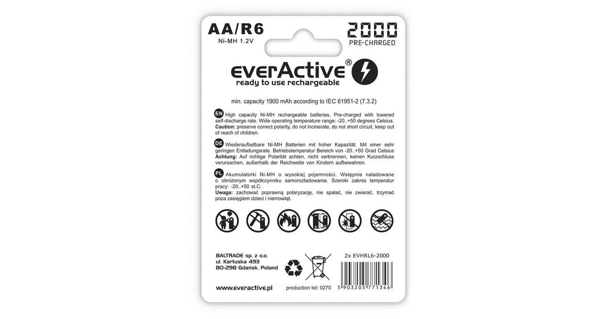 Everactive EVHRL6-2000 majapidamispatarei Laaditav patarei AA Nikkel-metallhüdriid (NiMH)