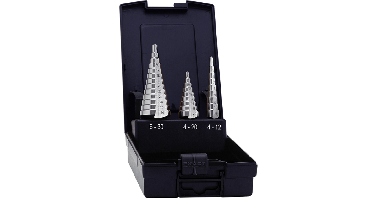 Exact 05332 Hss Step Drill Bit Set 3-Piece 6 - 30 Mm, 4 - 20 Mm, 4 - 12 Mm Triangular Shank 1 Set