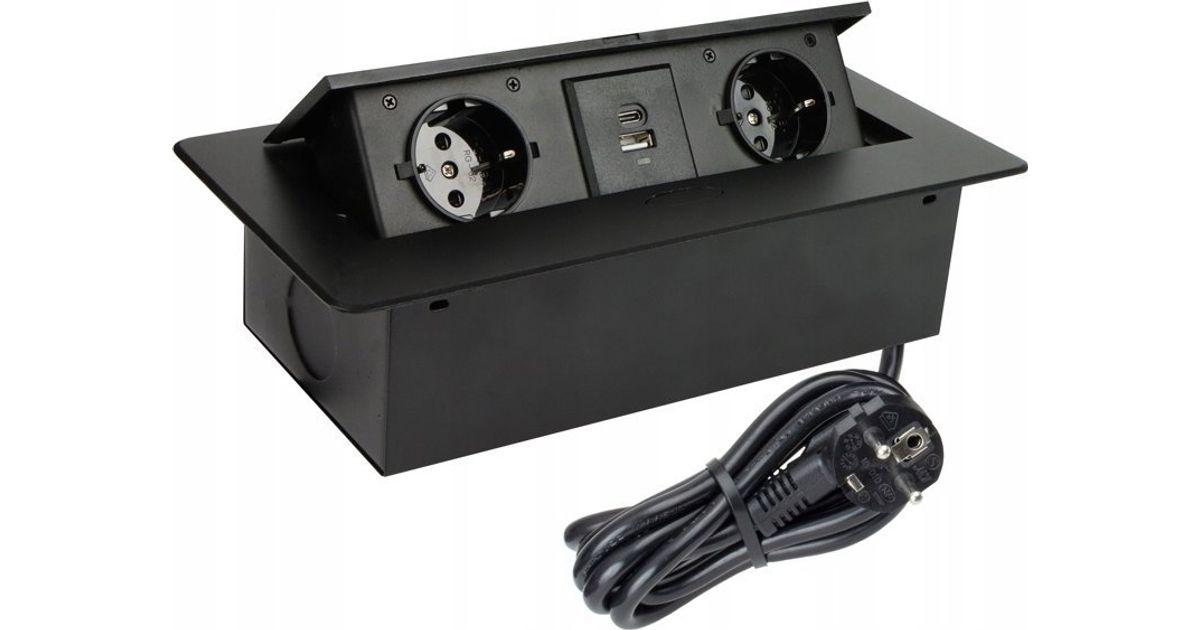 EXT CORD 2PL+USB A+C 3M BLACK | Sourcing