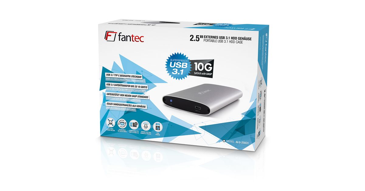 Fantec ALU-25U31, HDD/SSD ümbris, 2.5", Jada ATA, Jada ATA II, Jada ATA III, 10 Gbit/s, USB ühilduvus, Hõbe