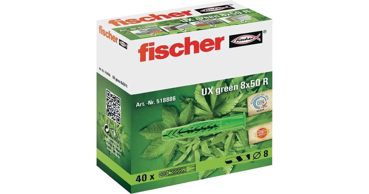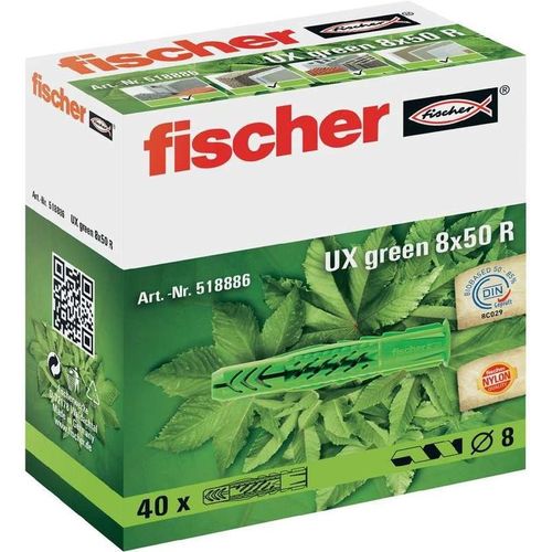 Fischer 518886, Nailon, Plast, Roheline, 5 cm, 8 mm, 6 cm, 4,5 mm