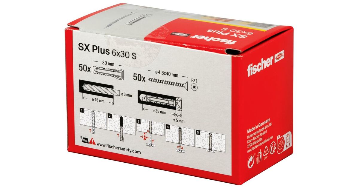 Fischer 568206, Kruvi ja seinatüübli komplekt, Poorbetoon, Telliskivi, Betoon, Kipskiudplaat, Müüritis, Nailon, Hall, Pozidriv, PZ2