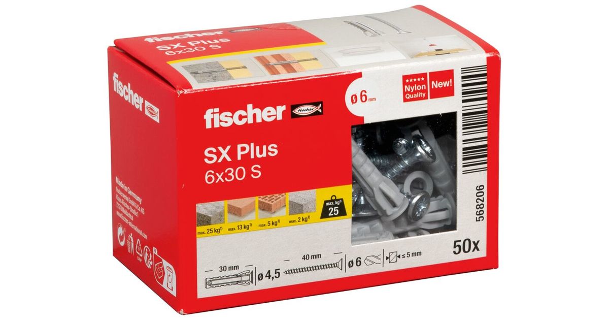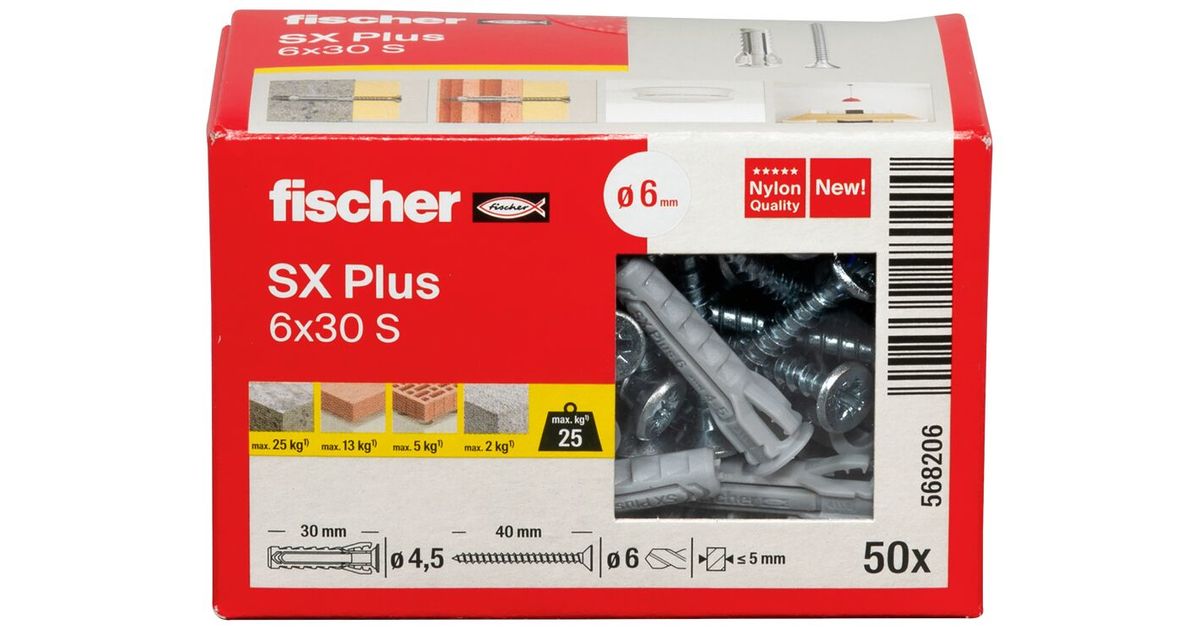 Fischer 568206 kruviankur ja seinatüübel 50 tk Kruvi ja seinatüübli komplekt