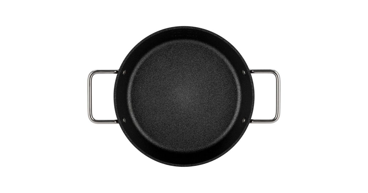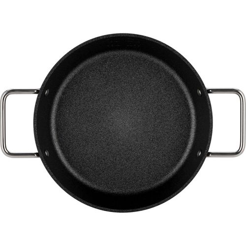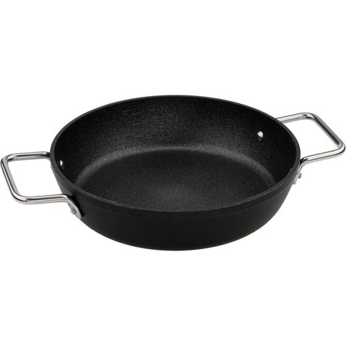 The Fissler Adamant serving pan impresses with its scratch-resistant water-based Adamant coating for versatile frying and, with its side handles and high rim, is ideal for the oven and for serving at the table.