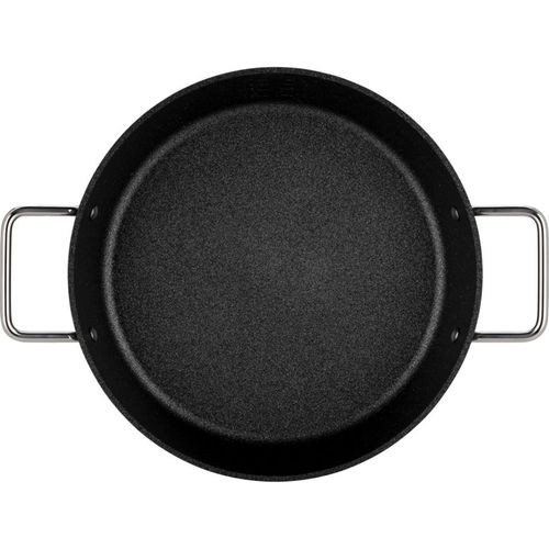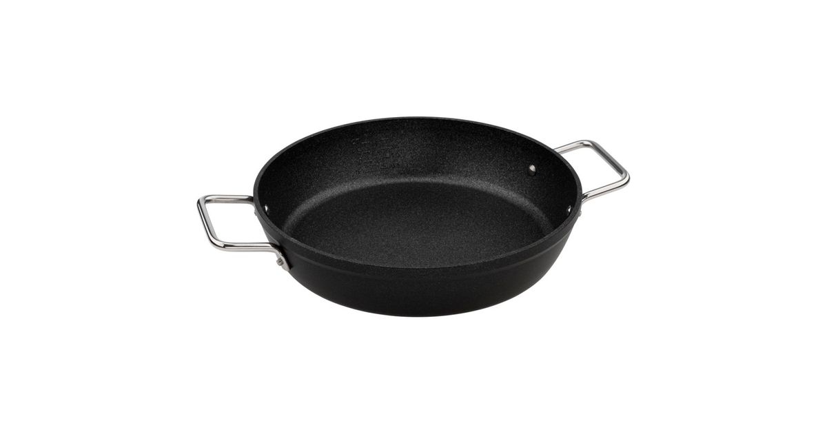 With two side handles, high edge and large frying surface for easy stirring and serving directly at the table.