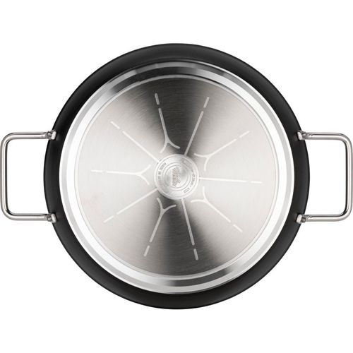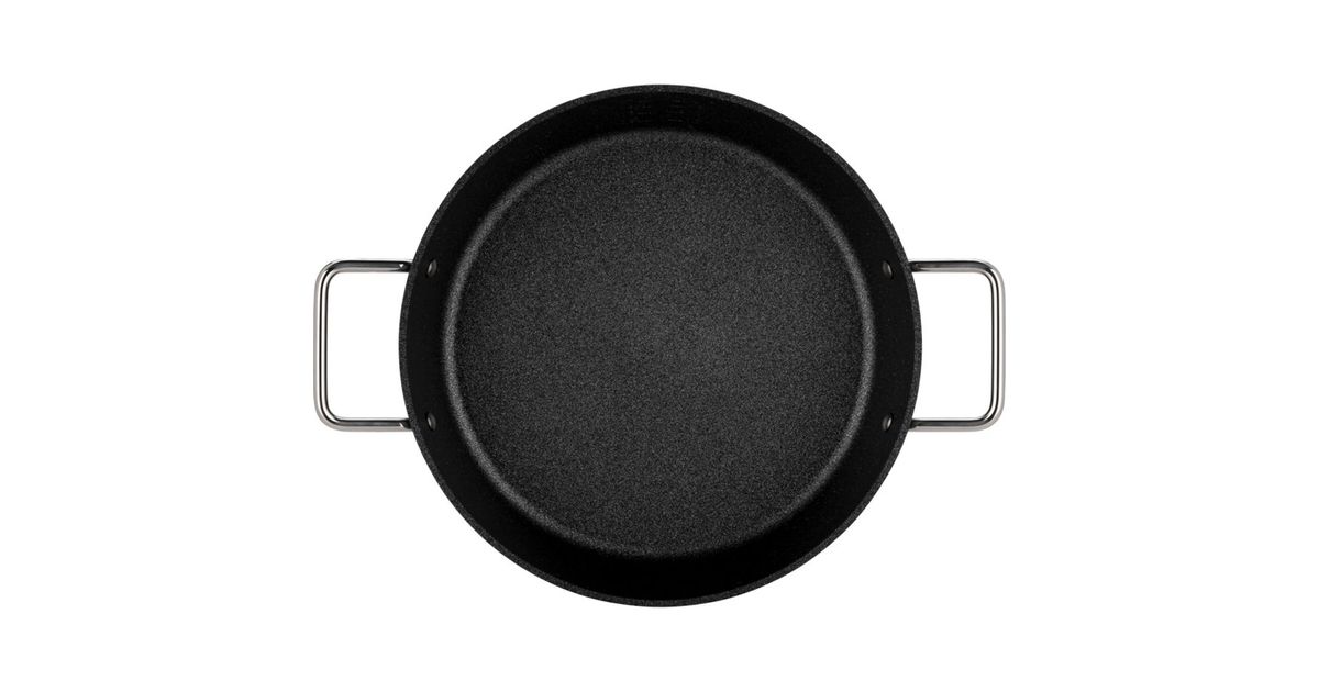 The Fissler Adamant serving pan impresses with its scratch-resistant water-based Adamant coating for versatile frying and is ideal for baking and serving at the table with its side handles and high edge.