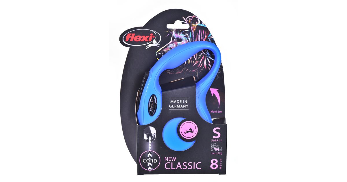 Flexi New Classic S Cord 8 m, Koer, Sissetõmmatav jalutusrihm, Sinine, Juhe, 12 kg, Monotoonne