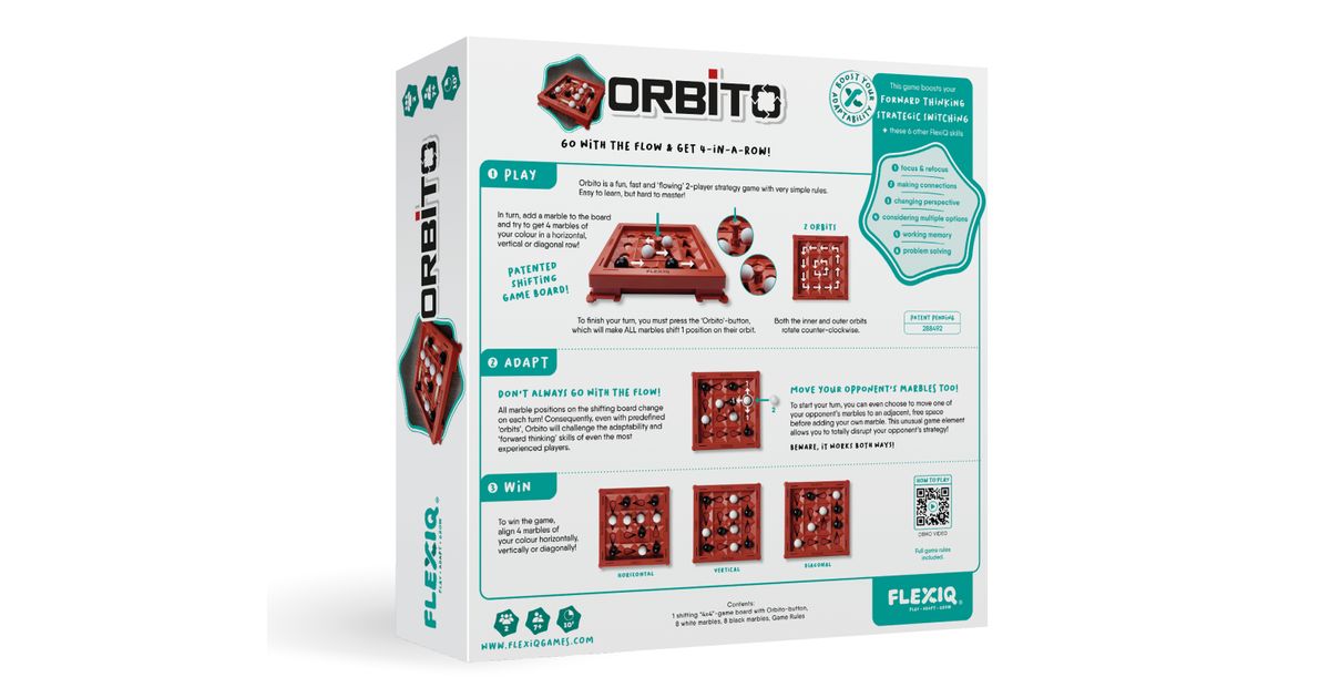 Teravda oma taktikalist taipu. Mängukäik: Püüa saada 4 oma värvi kuuli horisontaalsesse, vertikaalsesse või diagonaalsesse ritta nihkuval mängulaual. Ole tähelepanelik! Oma mänguvooru lõpetamiseks tuleb vajutada "Orbito"-nuppu, mis paneb kõik kuulid 1 positsiooni võrra nihkuma! Vanusele: 7+.