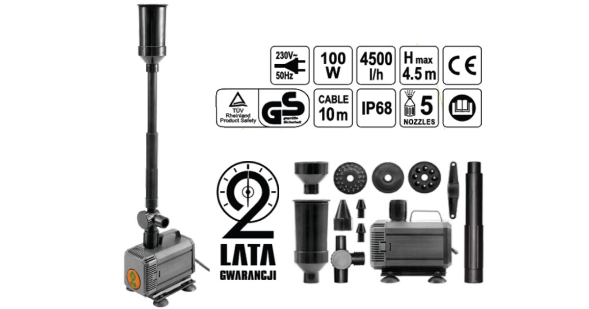 FLO Fountain pump 100W, 4500L / H H = 4.5m, 5-nozzles, 1 inch connection 79933