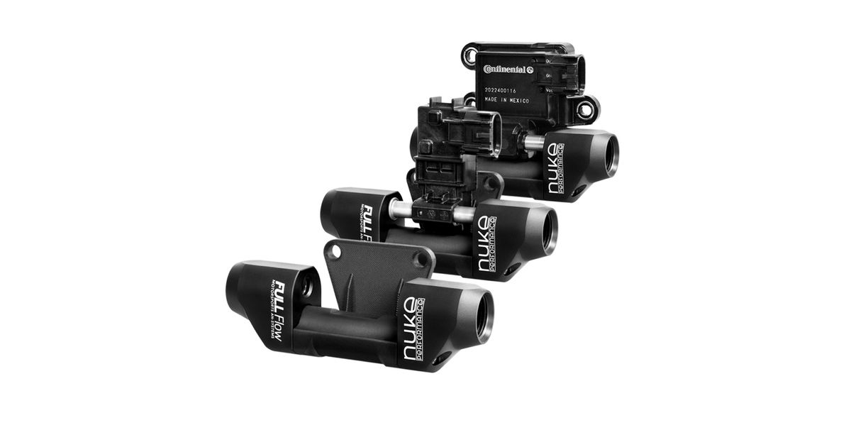The Nuke Performance split-flow sensor adapter has been developed to be used together with all the commonly used flex fuel content sensors such as Continental (GM) 13577429, 2022400116, 13577379, SE1003, and even the 13577394, which needs to be modified to a width of 95mm (3.75").