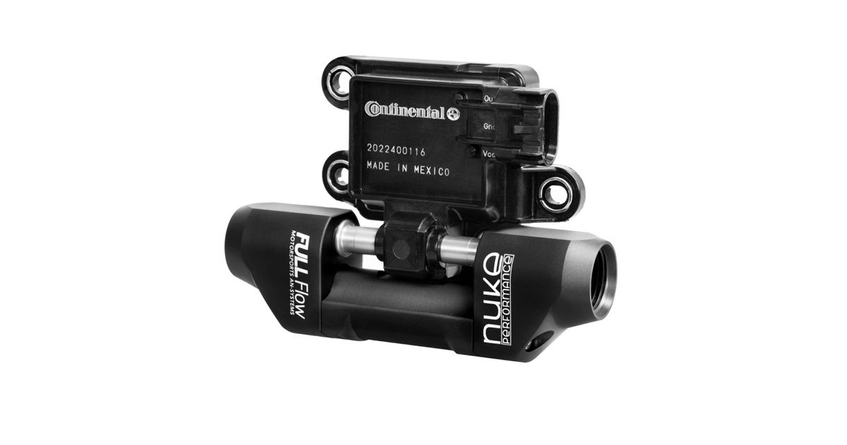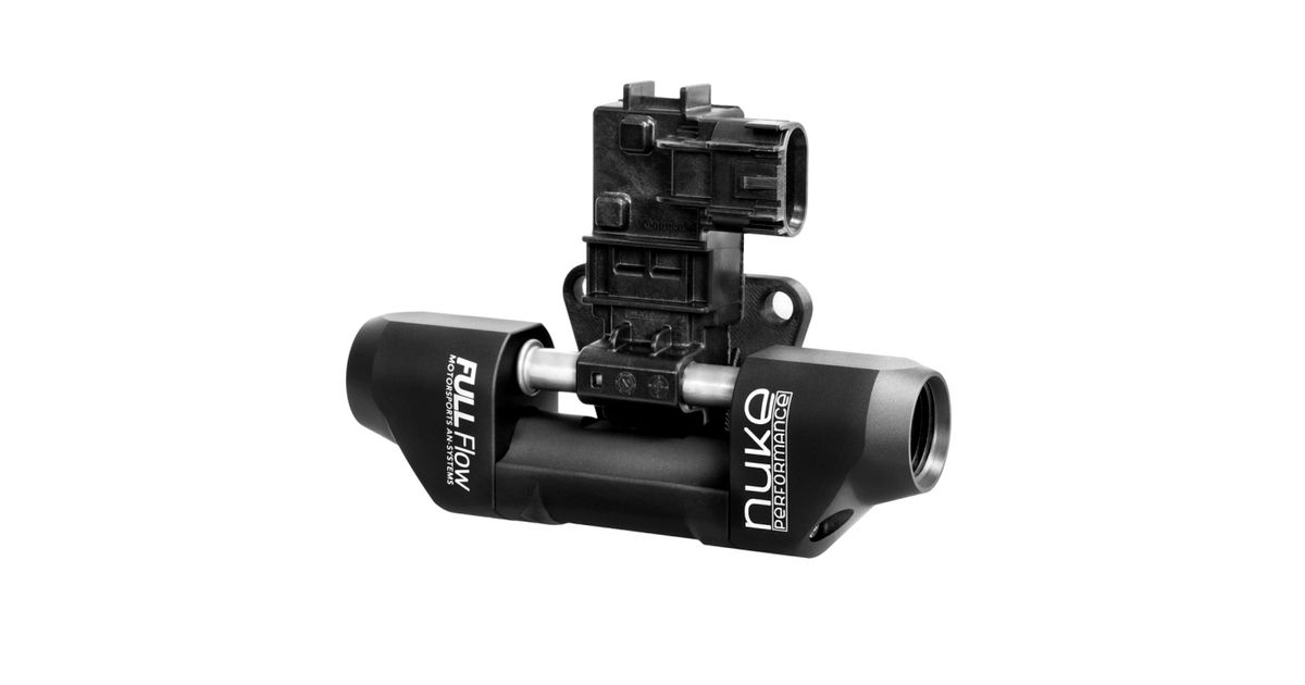 The oversized internal bypass fuel line integrated within the Nuke Performance Full Flow Flex Fuel Sensor Adapter exceeds a AN-10 fuel line capacity. The oversized internal gives you headroom where you need it and makes it possible to mount the sensor on either the pressure or return side of your fuel system.