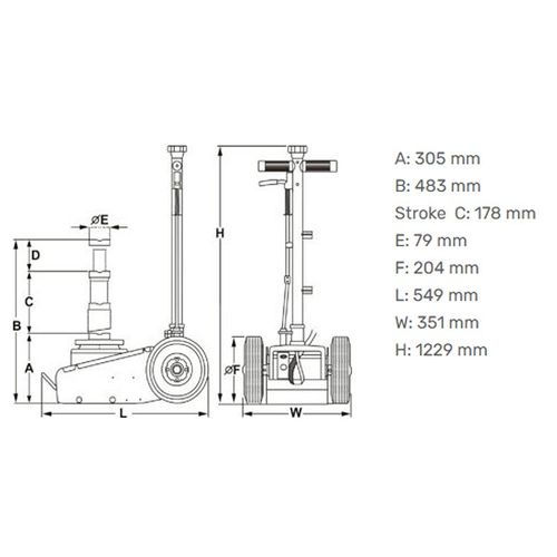 Uue põlvkonna hüdropneumo tungraud. Aastate jooksul läbi proovitud tehnilised lahendused uues kuues! Kummikattega. suured rattad tagavad veeremise ebatasasel pinnal ja samuti üle kaablite. õhuvoolikutee jne. Korralik 3-kordne värvkate peab vastu meie kliimaoludes ja on teesoola kindel. Lühike korpus. Mugav T-peaga käepide. Täpne tõstepäästik. Alumiiniumist. kergelt käsitletav libisemiskindel langetusnupp. Töörõhk 8-14 bar. Min kõrgus 305 mm. max kõrgus 483 mm. Kolvikäik 178 mm.