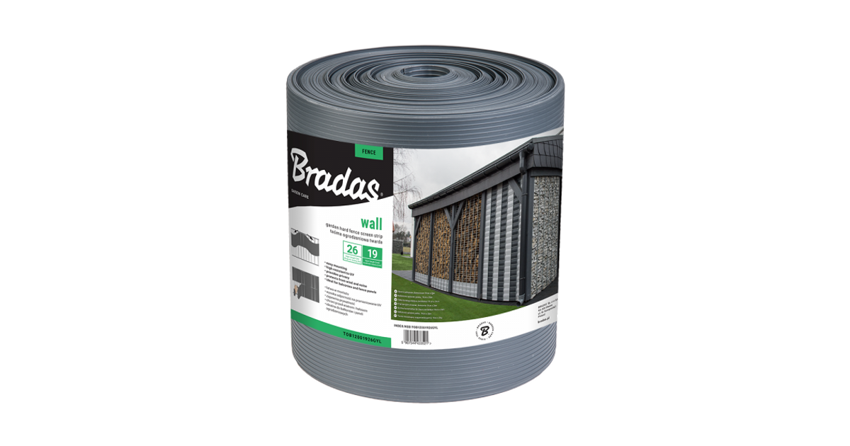 Garden fence screen strip SOLID 19cm x 26m, 1200g/m² grey