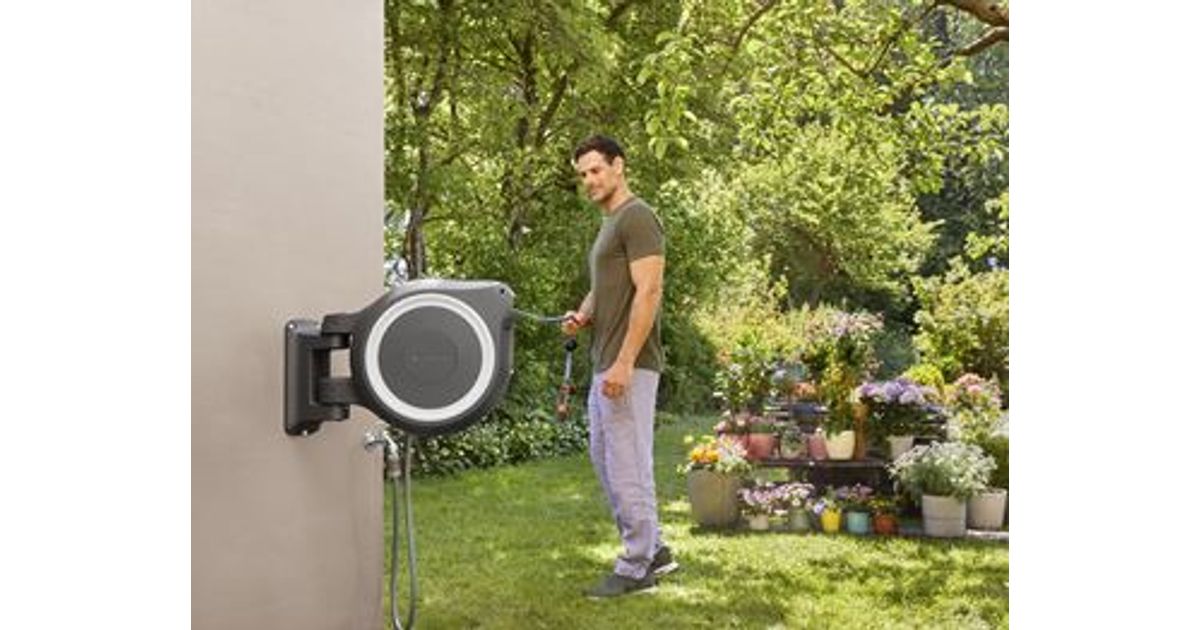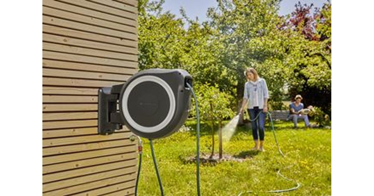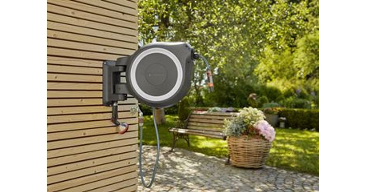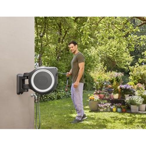 Gardena RollUp L, Seinale paigaldatud rull, Automaatne, Funktsionaalne, Must, Sinine, Hall, Seinale paigaldatud, 30 m