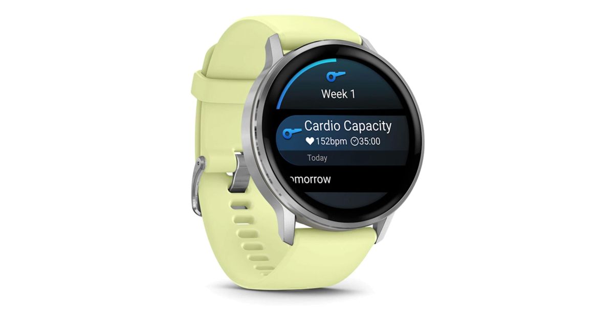 Garmin venu 4 silver 45mm with a yellow stripe