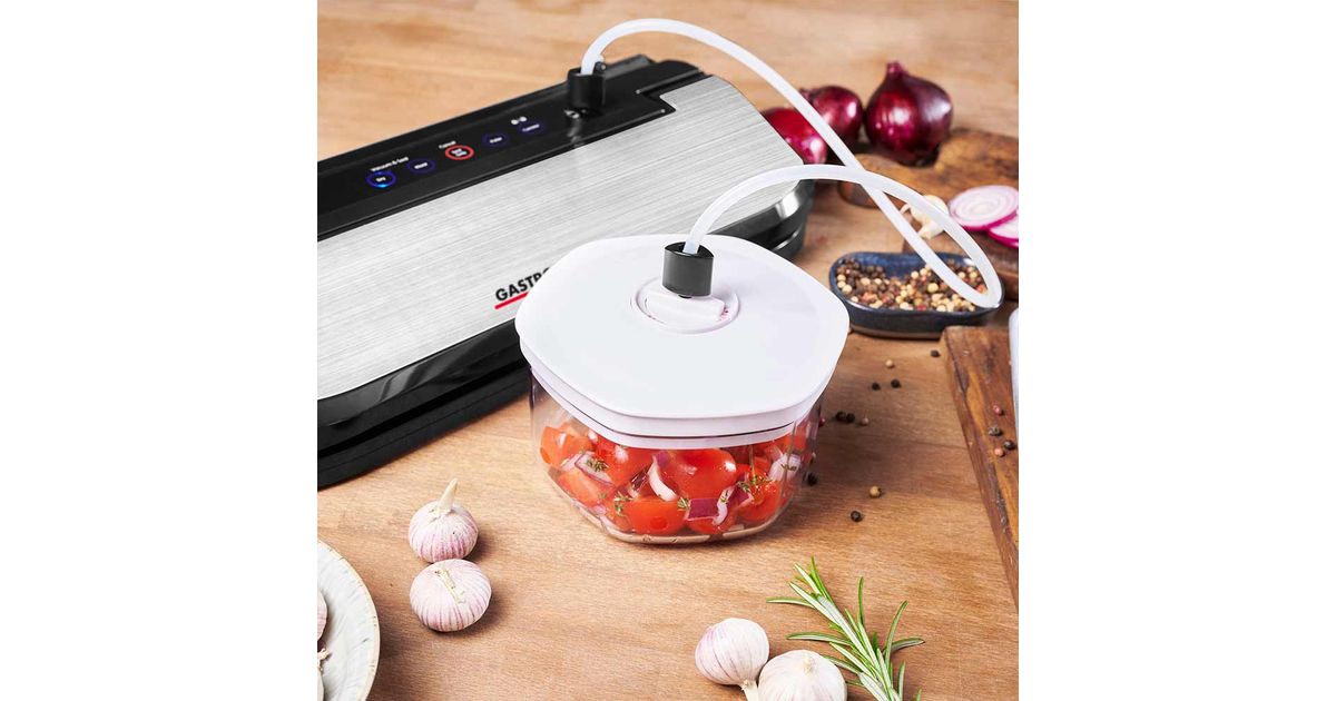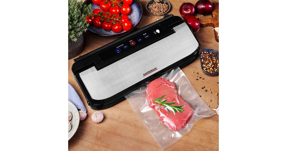 Gastroback Design Basic, Must, Roostevaba teras, 800 mbar, Kanister, Marineerige, Impulssvaakum, Vaakumtihend, Puudutus, 11 l/min, 30 cm